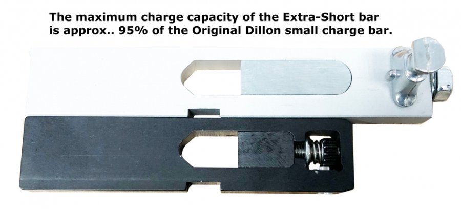 The charge capacity of the Extra-Short bar is approx.. 95% of the Original Dillon small charge bar.
