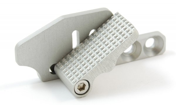 Ang pinakamalaking problema, gayunpaman, ay ang pagpapasya kung saan eksakto ikakabit ang thumb rest at anong anggulo ang pinakasuitable para sa iyong pagkakahawak sa pagputok. Isang beses na ikabit, ang karamihan sa thumb rests ay mahirap o imposibleng baguhin ang posisyon, dahil ang mga butas ng tornilyo ay naka-butas na sa frame. Ngunit bakit ka dapat limitado sa anggulo ng elevasyon na itinakda ng isang tagagawa o isa pa? Hindi na! Maaari mo ngayon i-adjust ang iyong thumb rest kung paano mo gusto, mag-eksperimento, at baguhin ito kung gaano kadalas mo kailangan. Ang orihinal naming disenyo ay nagbibigay-daan para sa walang limitasyong mga pag-aadjust sa loob ng mga ilarawan ng halos kalahating pulgada, at ang mga pag-aadjust na ito ay maaaring gawin nang hindi inaalis ang thumb rest mula sa frame. Maaari mong i-adjust ang paddle kahit na nananatili ang base na nakakandado sa posisyon.