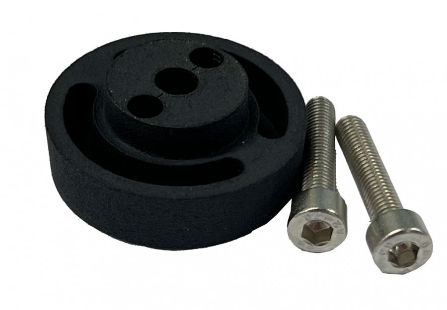 This Clutch Adaptor for DAA Turbo Disk/Mark7 CF is 3D printed from very hard-wearing Nylon12, using advanced SLS technology. The part fits onto the Mark7 motor shaft and the base of our Turbo plate, and includes long threaded inserts for the included, longer M5 bolts. Simply replace the lower clutch piece supplied with the DAA Turbo plate, reassemble using the supplied longer bolts, and you are good to go!