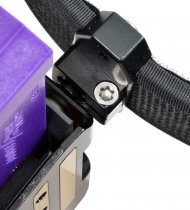 La junta esférica se sujeta en el colgador de cinturón de aluminio mediante un acoplamiento de presión con un gran tornillo Torx T25 M6. Esto ofrece un bloqueo totalmente seguro y la opción de hacer ajustes mínimos al ángulo e inclinación de la bolsa.