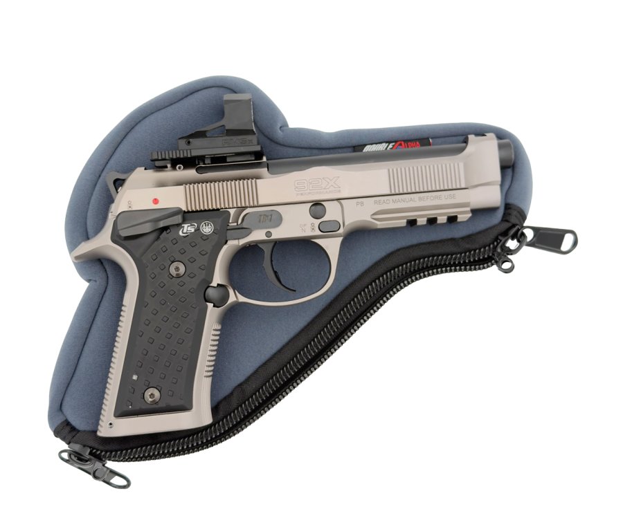 La funda para pistola de neopreno ultra compacta DAA está diseñada para adaptarse a cualquier pistola estándar (Limited), de Producción o de Producción Óptica (Carry Optics), ocupando el espacio mínimo en tu bolsa de tiro.
