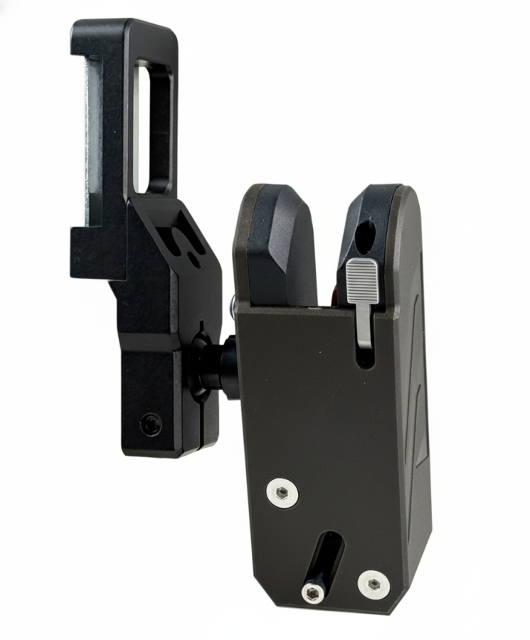 The Flex Air’s ball joint and rail height adjustments are derived from the proven Alpha-X design. The large 18 mm ball joint with an M6 clamping screw provides a full range of tilt and cant adjustment with a rock-solid lockup. Front access makes it possible to set up and adjust the holster while wearing it.